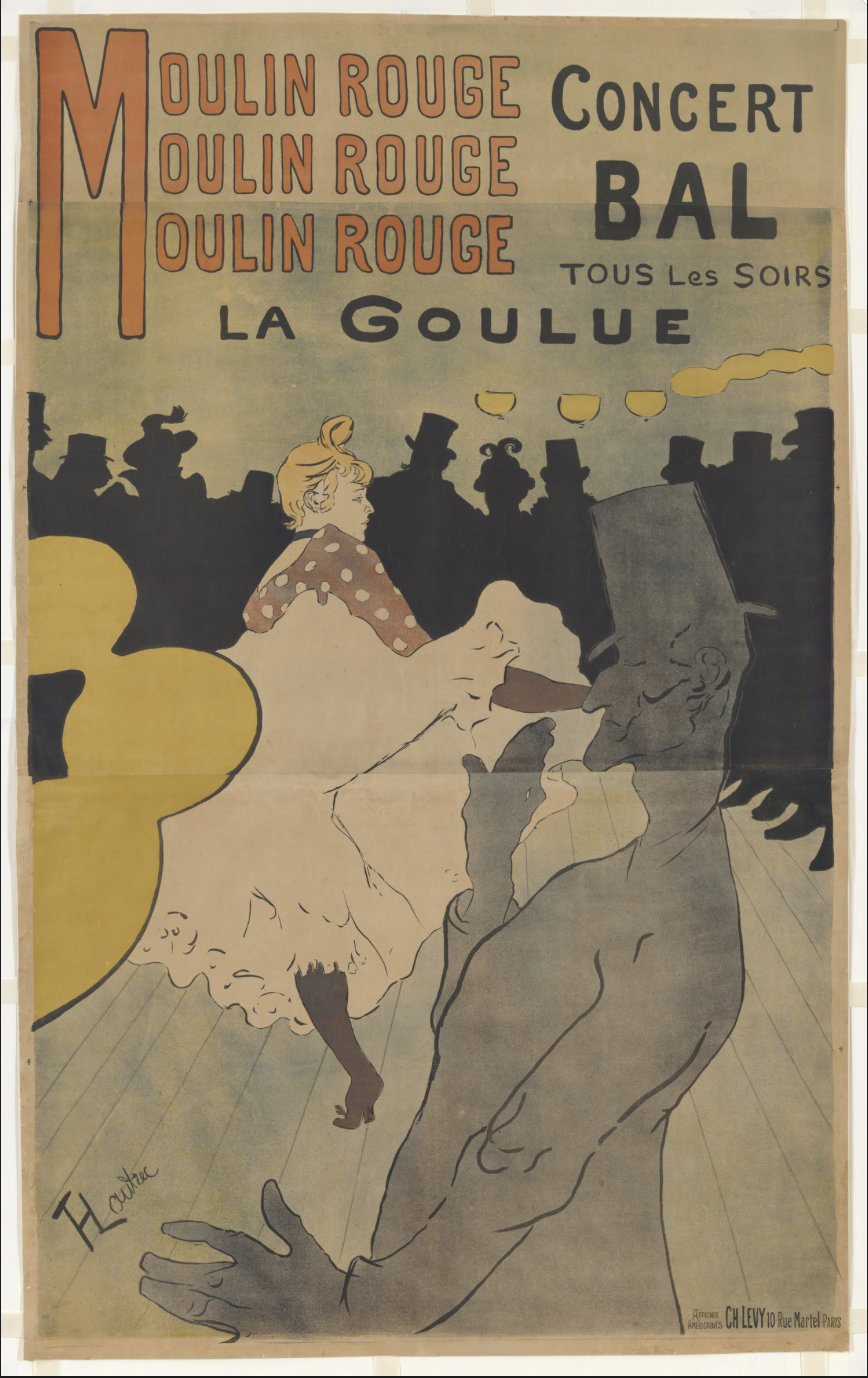 Анри де Тулуз-Лотрек, «Moulin Rouge — La Goul», 1891; Анри де Тулуз-Лотрек, «Джейн Авриль», 1893; Анри де Тулуз-Лотрек, «La Revue Blanche», 1895; Анри де Тулуз-Лотрек, «Le Divan Japonais», год неизве