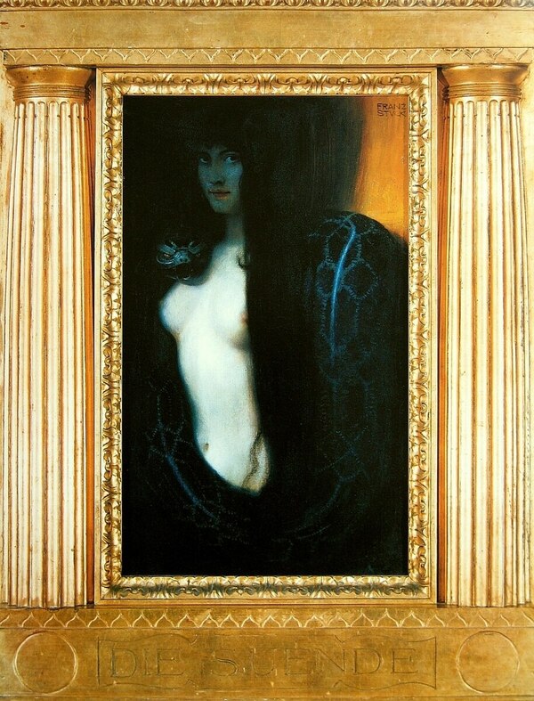 Франц фон Штук, «Грех», 1893; Фелисьен Ропс, «Human Pardon», 1878–1881