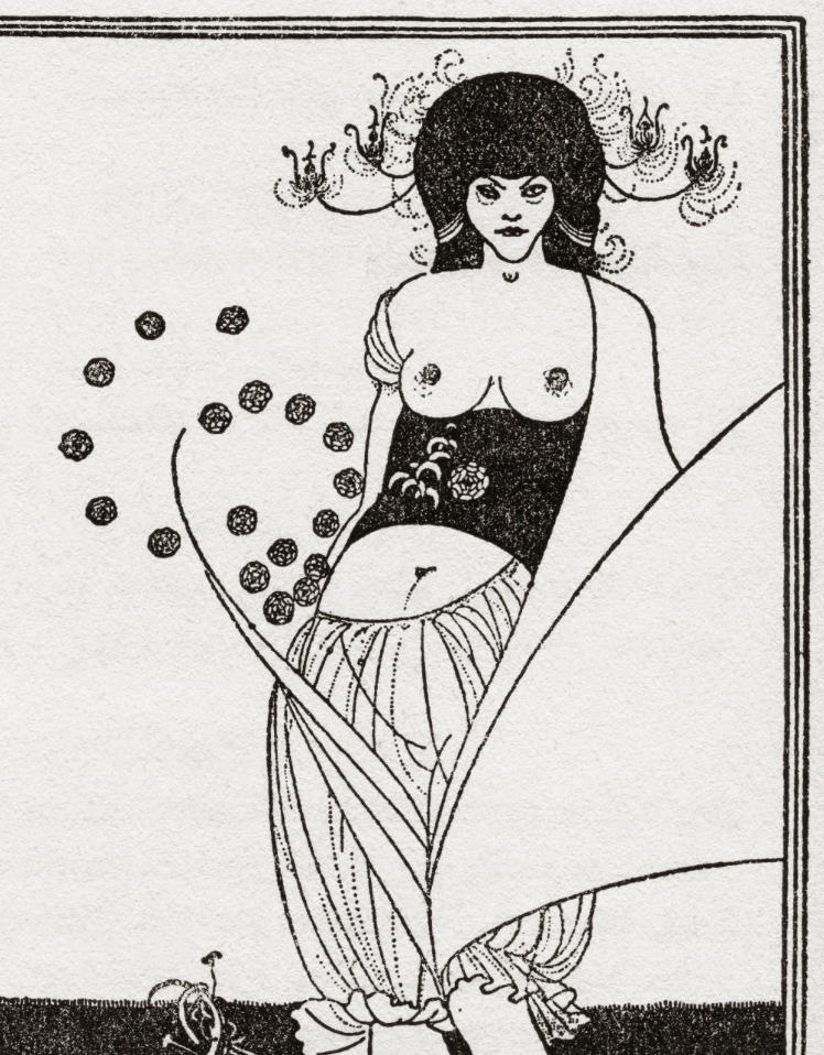 Обри Бердсли, «Salome’s Toilette», 1894; Обри Бердсли, «The Stomach Dance», год неизвестен; Обри Бердсли, «The Black Cape», год неизвестен
