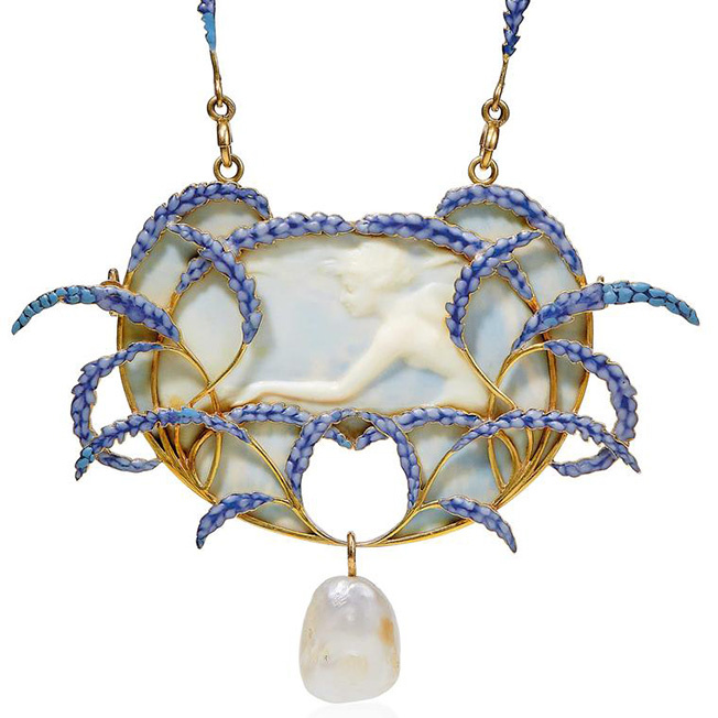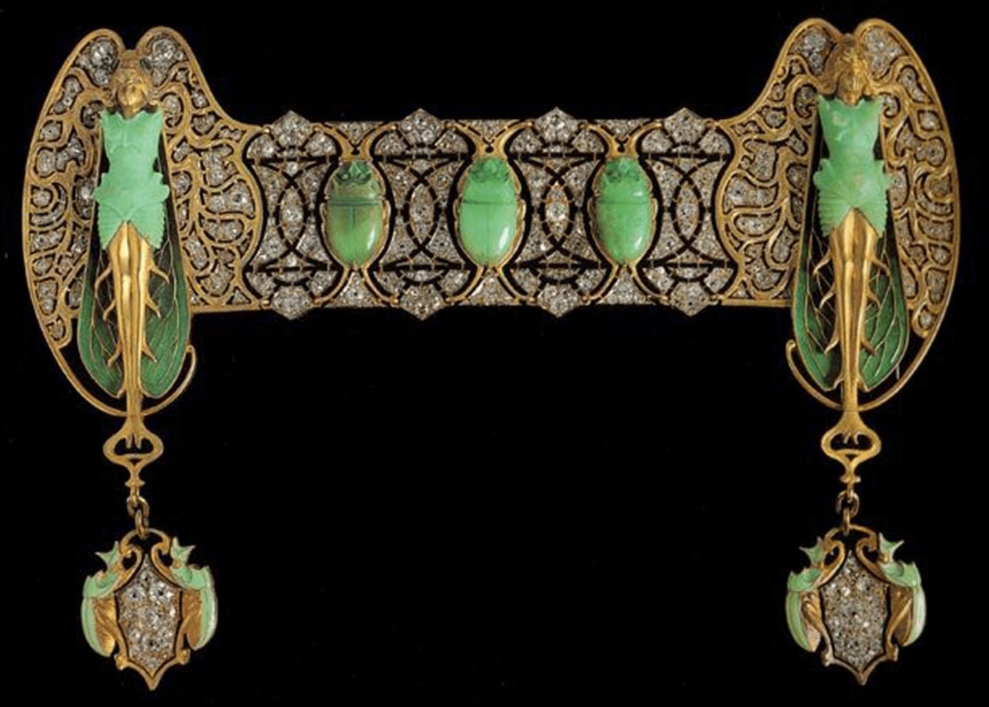 Ювелира Рене Лалика интересовала пластика и ритм женского тела. Стрекозы и цветы становятся продолжением фигуры, текучие линии сливаются с телом, а эмаль и стекло создают впечатление прозрачной кожи.