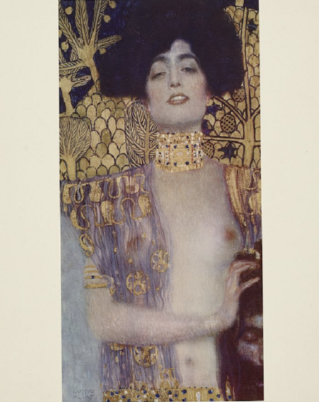 У Климта в библейском сюжете золото, декоративные узоры и поза создают ощущение силы и соблазна. В деталях раскрывается соблазн женского начала, а плотная золотая плоскость и контуры фигуры формируют властный образ, граничащий с божественным.