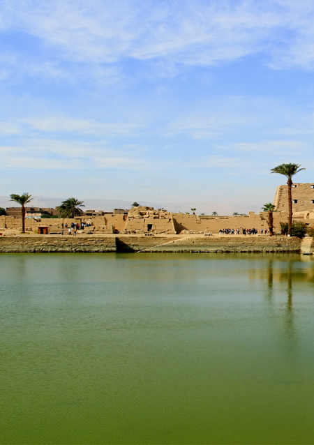 Прямоугольная, идеально ровная форма напоминает нам порядок, гармонию, противопоставленную хаосу природы. Можно сказать, что это озеро напоминает Нил, взятый под контроль человека и призванного служить для поддержания порядка в Мире. Расположение к югу от главного храма совпадает с расположением истока реки Нил, символа жизненных сил. Так озеро будто становиться источником жизни и порядка.