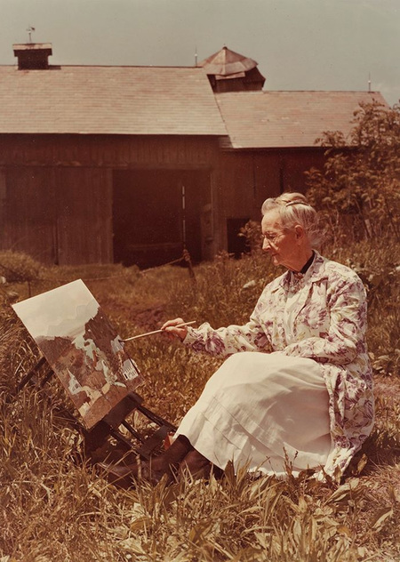 [1] Анна Мэри Робертсон Мозес, «Haymaking», 1950 г.; [2] Анна Мэри Робертсон Мозес, «Hoosick Valley (From the Window)», 1946 г.