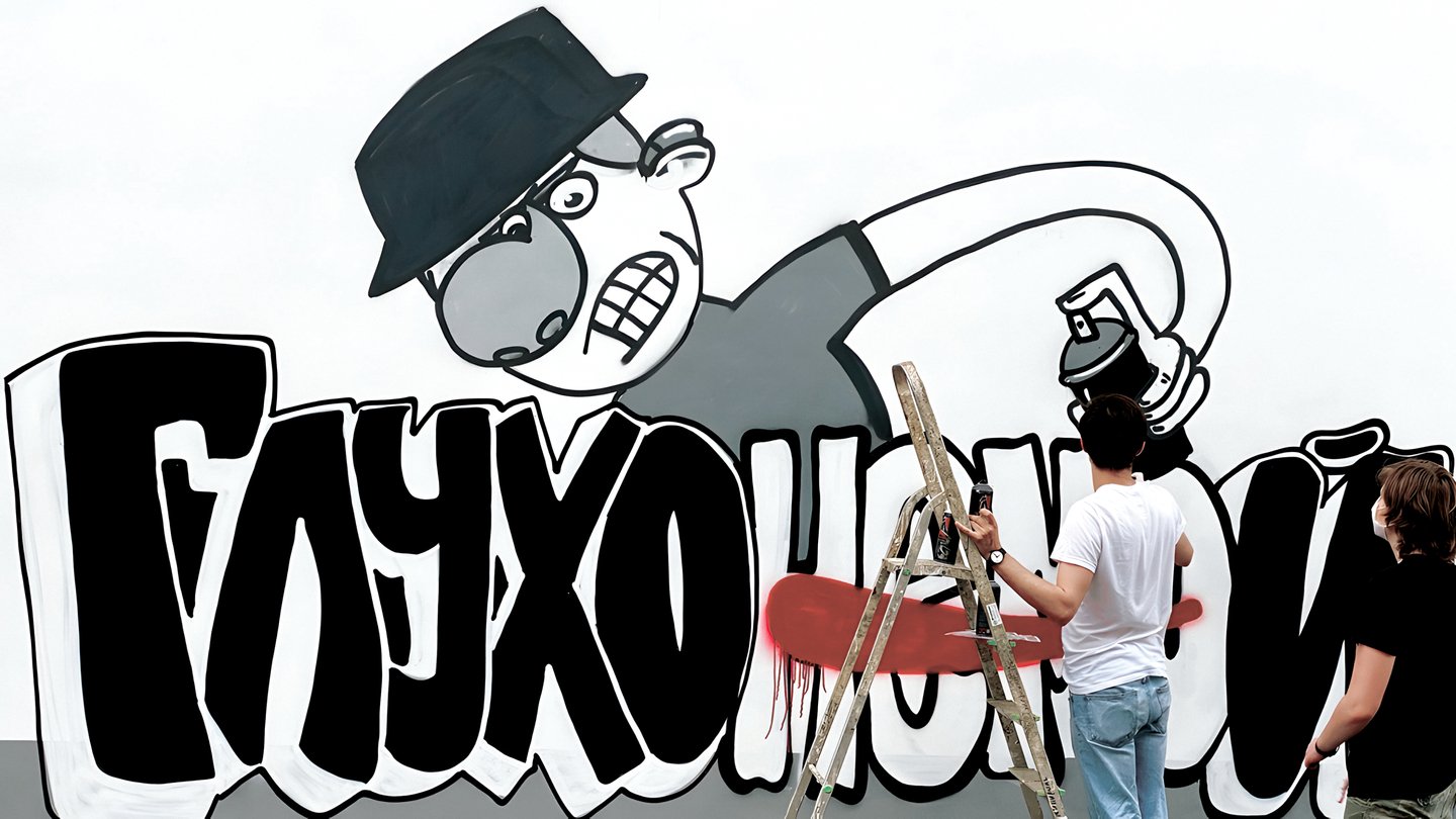 Иллюстрация выполнена по мотивам граффити Ивана Днепрова и стрит-артиста Миши Most 2, 2020 года