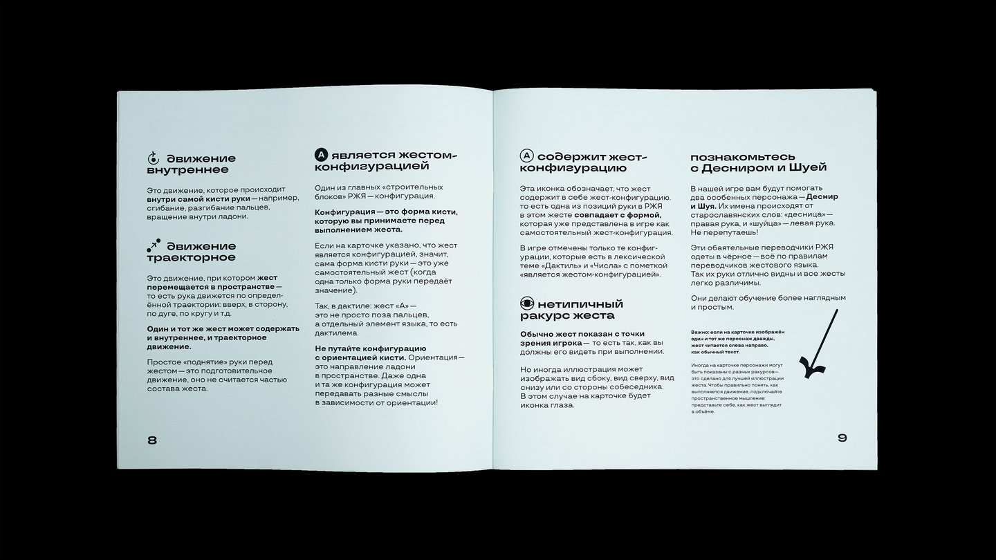 Чтобы помочь игрокам понять структуру жеста как части лингвистической системы и применять эти знания в мини-играх, в углы карточек были добавлены иконки, поясняющие основные компоненты жеста.