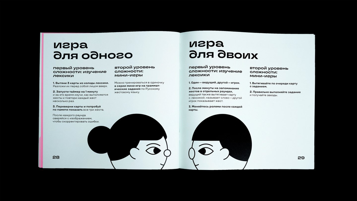 «Наши жесты» — это гибкая игра: она подстраивается под ваш ритм. Можно учить жесты в одиночку, тренироваться в паре или устроить весёлую игру в компании из 3  — 4 человек.