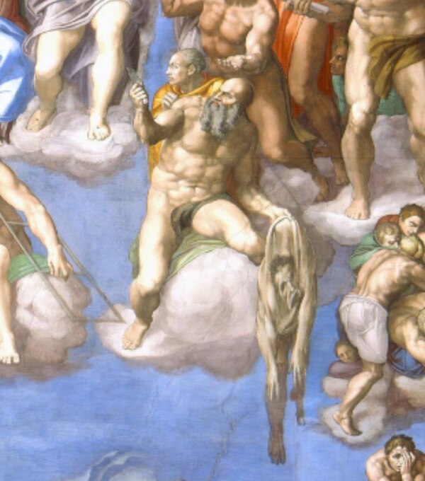 «Святой Варфоломей»/Сурбаран/1633 г., Фрагмент картины «Страшный суд»/Микеланджело Буонарроти/1536–1541 гг.