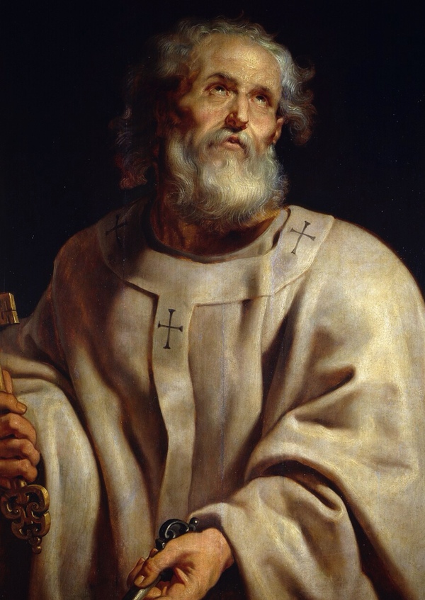 Апостол Пётр — один из самых почитаемых у христиан Святых. Его атрибутом являются ключи от Рая, дарованные ему Христом. Эти ключи символизируют его власть над церковью. Его всегда изображают старцем с седой бородой, часто лысеющим. Традиционно его одеяния желтого и синего цветов.