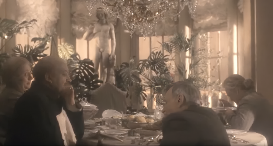 Даже в тех сценах, которые формально можно назвать диалогом, персонажи не слышат и не видят друг друга. Возникает ощущение, что их реплики принадлежат разным временным пластам, как будто они произнесены с разрывом в десятилетия, а зритель наблюдает лишь монтажно совмещенные фрагменты.