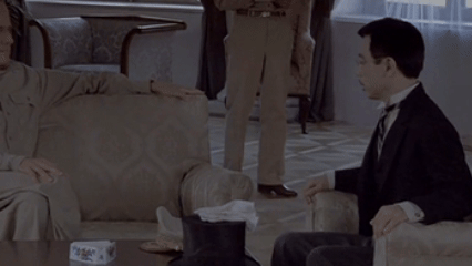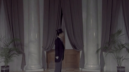 Его движения отстраненны. Он не жестикулирует, не выражает эмоций невербально, создается ощущение, что всего его тело — механизм, настолько неестественно и отточено он двигается.
