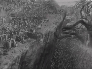 «Сказка» окончательно трансформирует пространственное одиночество. Загробный мир, в котором оказываются герои, — это не небеса, но и не ад в классическом смысле. Это чистилище, которое напоминает примитивистский рисунок или забытую детскую книгу.