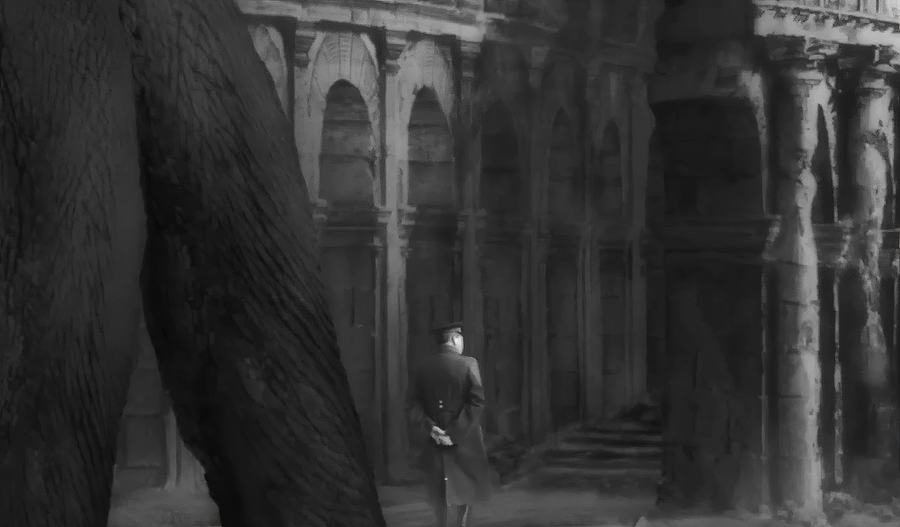 Пространство дворца, при всей его громадности, сжимается для героя до нескольких комнат, обставленных очень формально, до нескольких маршрутов, соединенных безжизненными коридорами и лестницами, до нескольких повторяющихся движений. Физическая свобода не спасает от духовного стазиса.