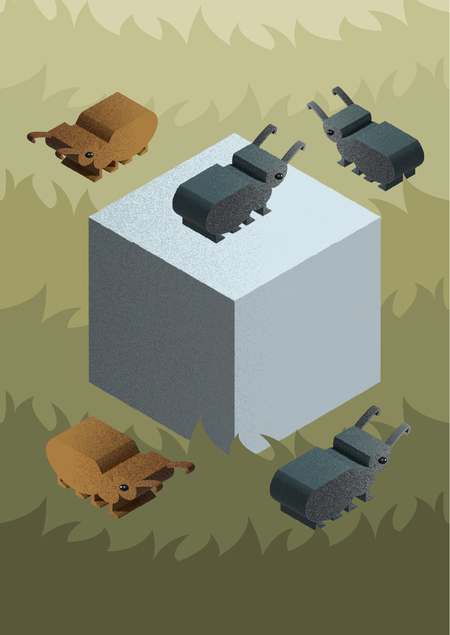 Серые кубы в лесу — камни. Они мешают передвижению. Белые — сахар, за них муравьи и воюют. Желтый — суперсахар. Он поможет муравьям совершать больше действий.