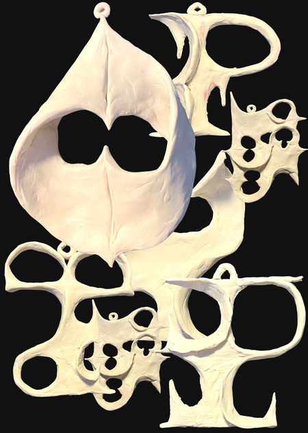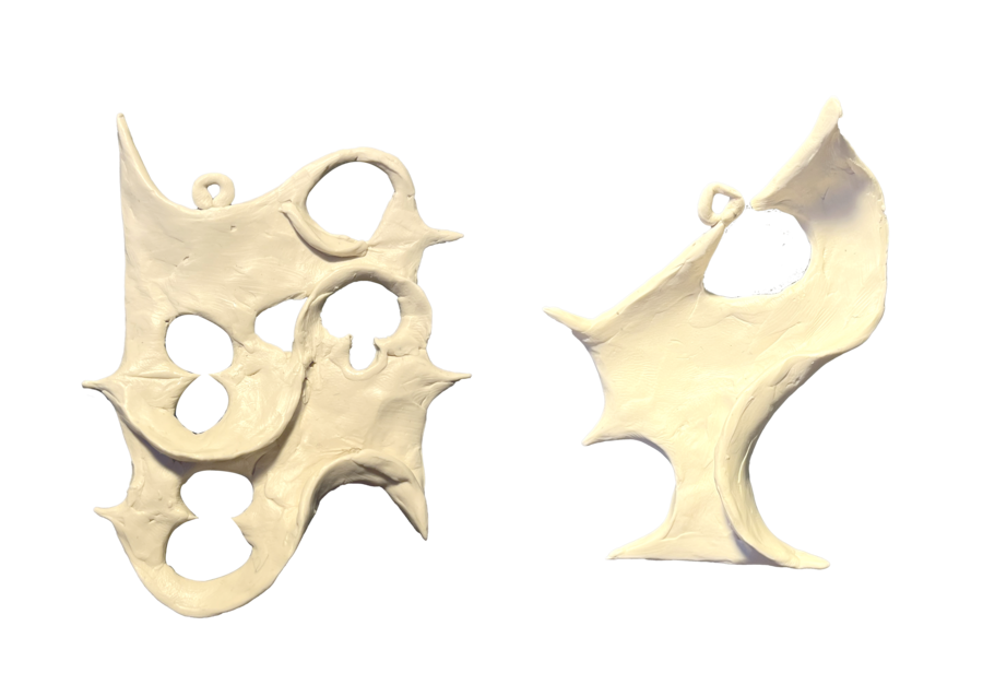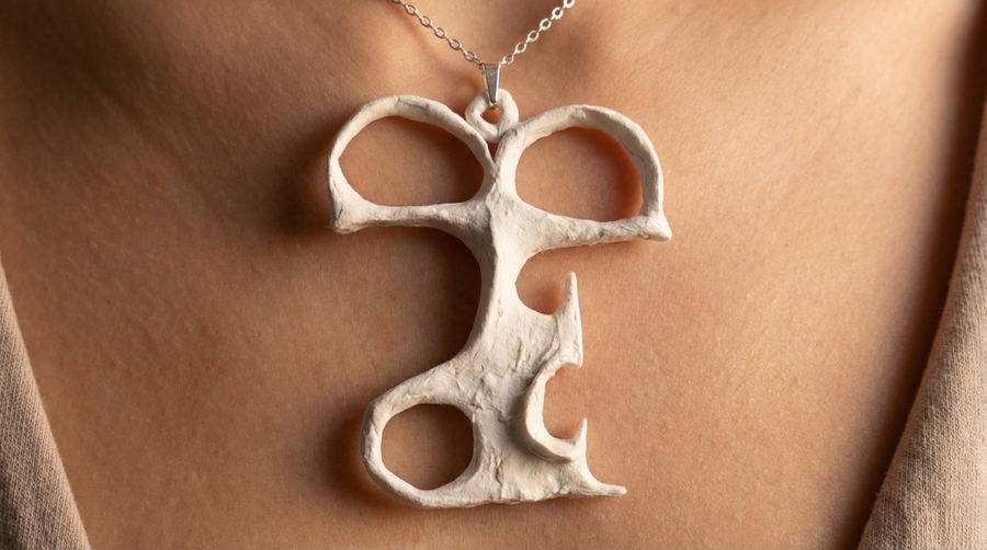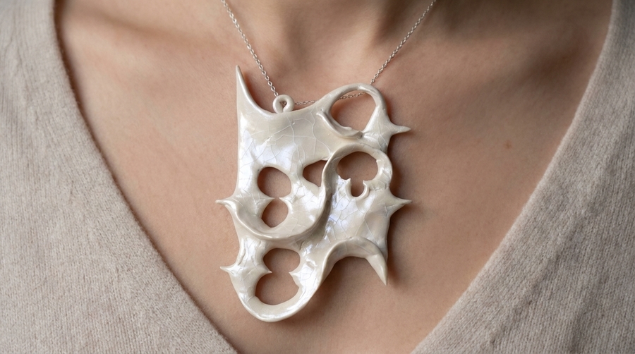 К постановке трагедии Эсхила «Орестея» была разработана линейка мерча. Это подвески, собранные из конфигурация модуля, гироида. Он является визуальной основы сценографии. Украшения созданы из органических фактурных материалов. Это делает их не только изящными по форме, но концептуальными по содержанию.