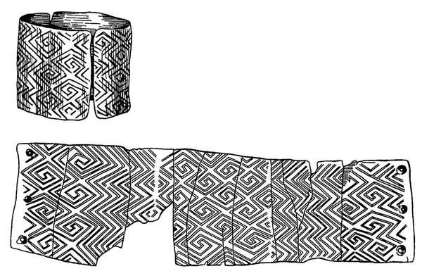 Браслет из бивня мамонта с меандровым орнаментом. Мезино, Поздний палеолит.