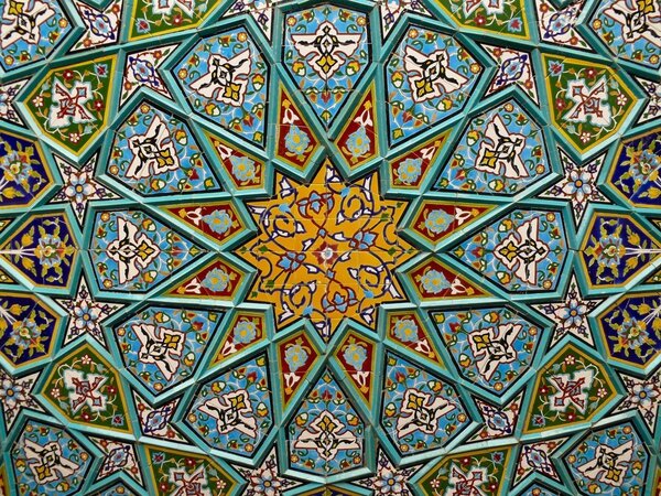 Арабески, разрастающиеся в непрерывном ритме, и зелёный цвет — знак жизни и священности — становятся визуальной основой исламской эстетики. Покрытые узорами стены мечетей создают медитативное пространство: повтор, ритм и бесконечность орнамента помогают верующему отвлечься от материального и приблизиться к духовному. Каллиграфические цитаты из Корана, вплетённые в узоры, усиливают это воздействие, соединяя слово Бога с визуальным воплощением его гармонии. Так исламский орнамент превращается в средство духовного созерцания и выражение философского взгляда культуры на мир.