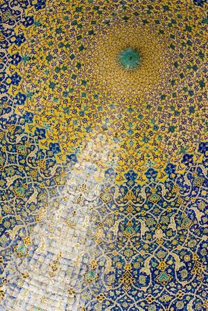 Купол мечети Шаха в Исфахане, Иран / Мозаичный купол в мавзолее Хафизе в Ширазе, Иран