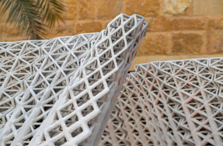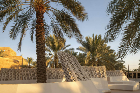Архитекторы из Precht и Mamou-Mani Architects представили в Саудовской Аравии инсталляцию Sandwaves — параметрическую уличную мебель, напечатанную на 3D-принтере. Структура инсталляции напоминает геометрический орнамент. Проект сознательно использует самый доступный местный материал — песок, соединяя его с биосмолой. Цель работы — наглядно показать симбиоз природы и высоких технологий, создав функциональный объект, органично вписанный в ландшафт.