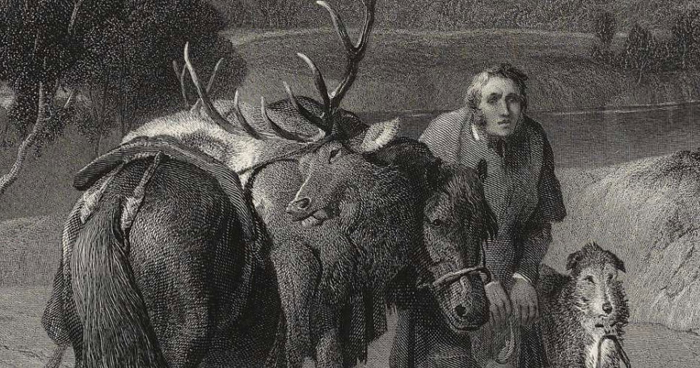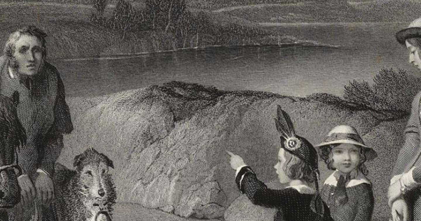 Работа была сделана на память для королевы Виктории о первой поездке в Шотландию. Она повествует о том, как британский монарх вместе со своими детьми гуляет, проводит время. И вот на встречу идёт охотник. Он смотрит и не может поверить своим глазам. Он и не думал встретить королеву на своем пути.