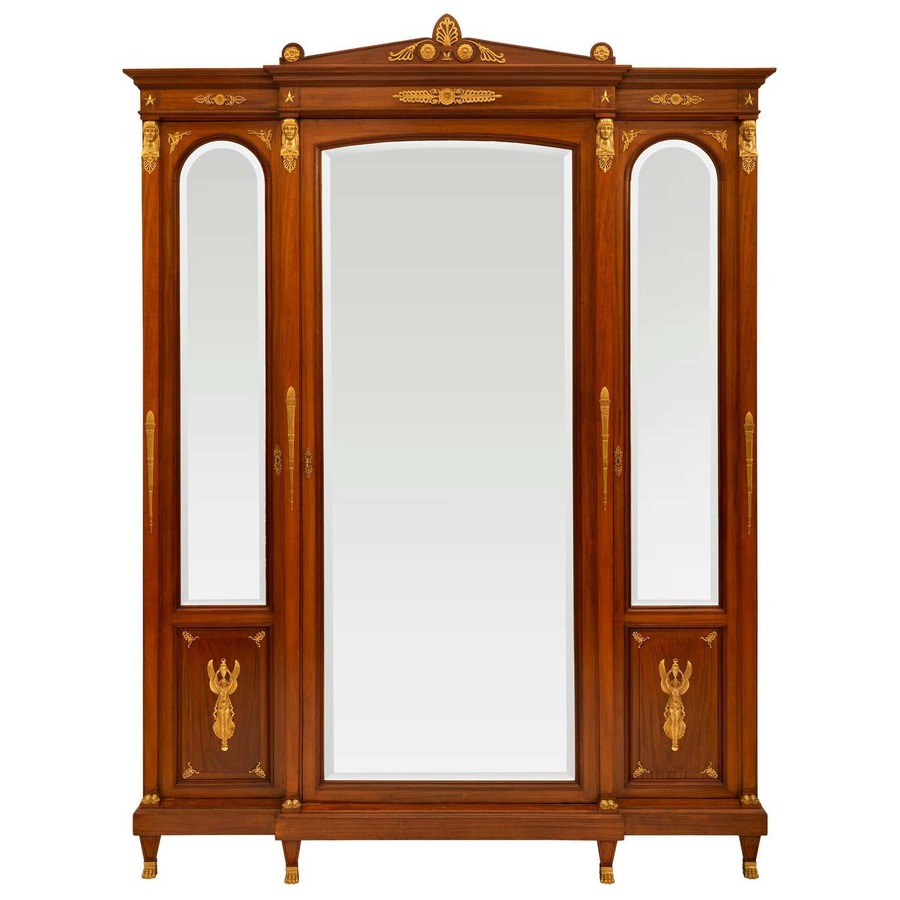 Французская империя XIX века. Шкаф из красного дерева и ормолу
