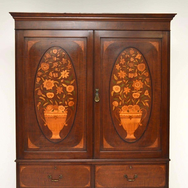 Старинный эдвардианский льняной пресс от Maple and Со. Он был изготовлен в Англии примерно в 1890–1910 годах