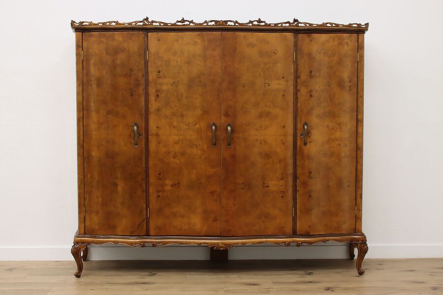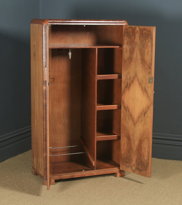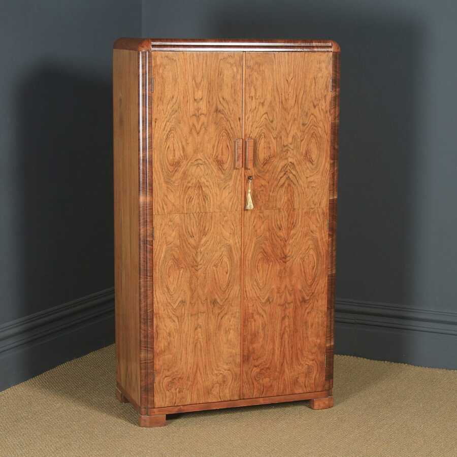 Антикварный двухдверный шкаф из фигурного ореха в стиле ар-деко, Англия, примерно 1930 г.