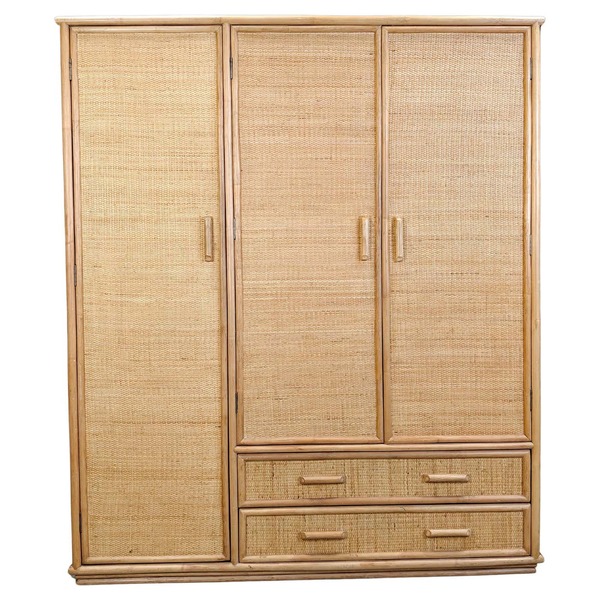 Винтажный итальянский шкаф из ротанга и бамбука, конец 20 в.