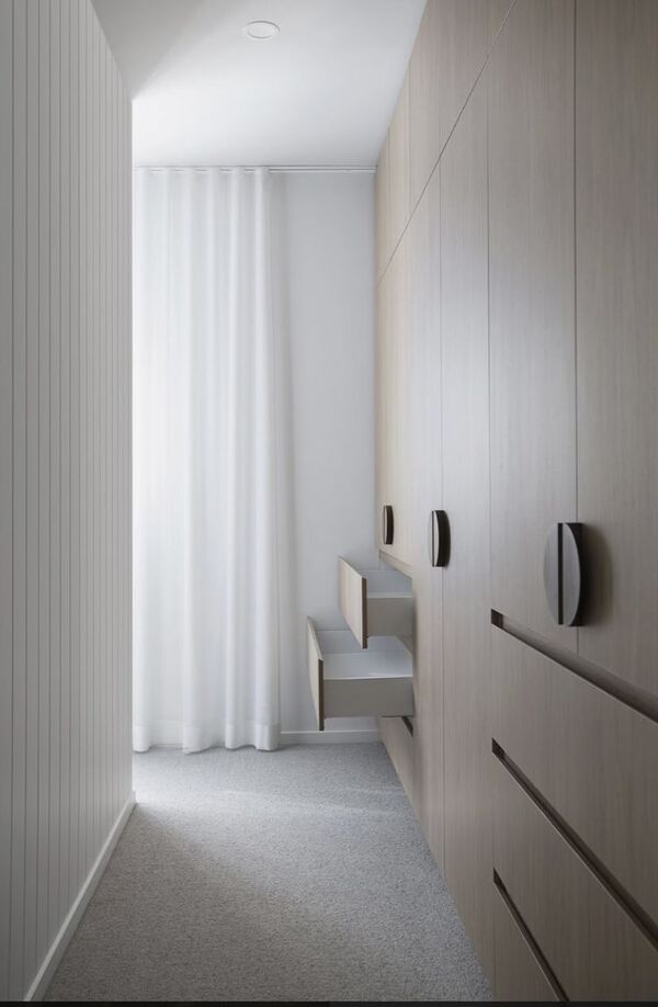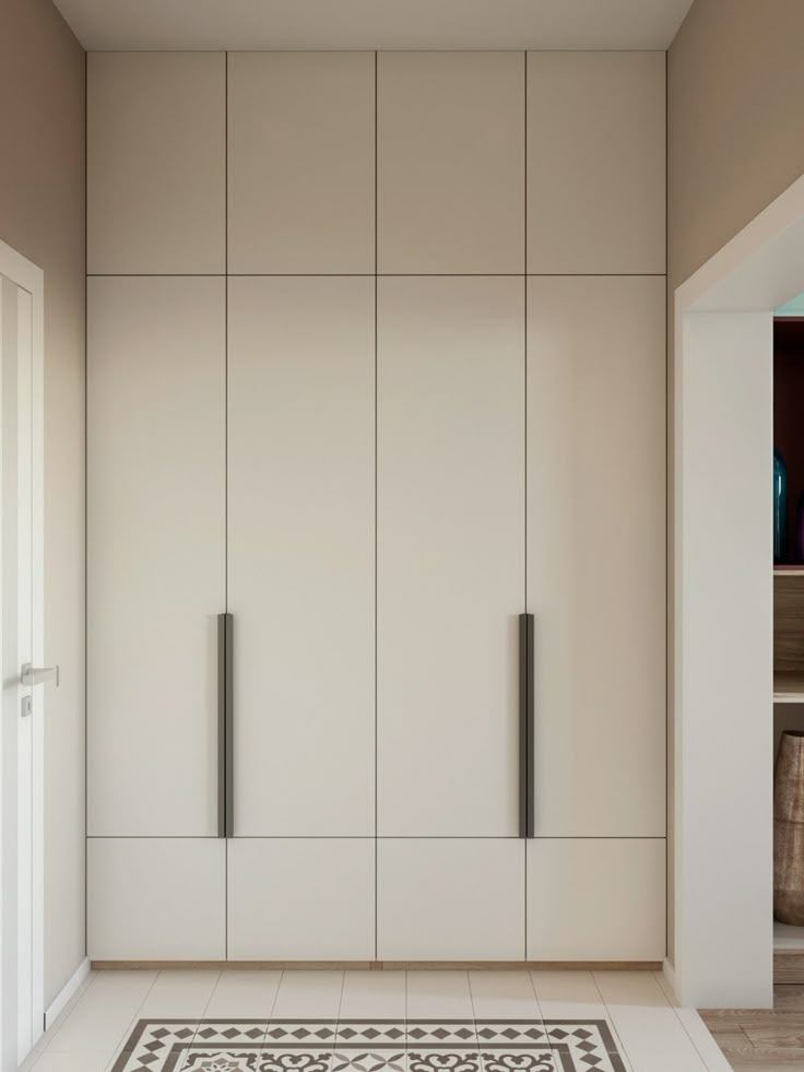 На этом этапе появляется шкаф‑купе — конструкция, маскирующая объём за гладкой плоскостью дверей и тем самым устраняющая ощущение массы и глубины. Архитекторы всё чаще формулируют принцип: «лучший шкаф — тот, которого не видно».