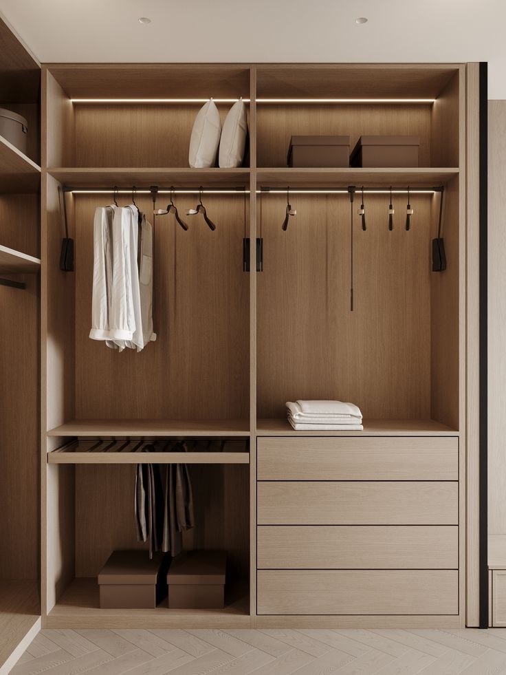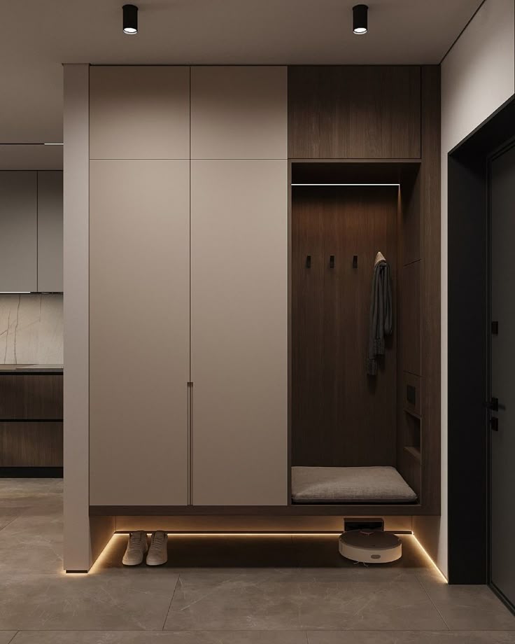 Встроенные системы хранения не только уменьшают визуальный беспорядок, но и преобразуют восприятие жилого пространства. Если в XIX веке шкаф был отражением хозяина — его статуса, привычек, вкуса — то сегодня шкаф спрятан, а вещи исчезают за дверцами-панелями.