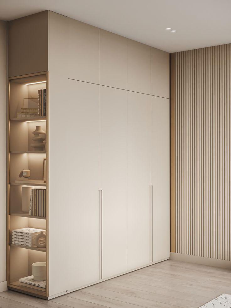 Следующий раздел будет посвящён этапу, когда мебель хранения становится встроенной и почти незаметной: шкаф-стена, шкаф-купе, панель хранения — всё это признаки, что предметность утрачивает своё значение, а пространство обретает новую, более нейтральную форму.