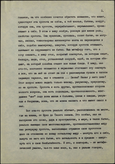 Большинство инсталляций Ильи Кабакова связаны с ощущением пустоты, с отсутствием героя. В тексте «О пустоте» Илья Иосифович осмысливает сущность этой самой пустоты, глядя на пустое только что покинутое купе. В некотором смысле он раз за разом воссоздает это ощущение в своих работах, пусть и в иных декорациях.