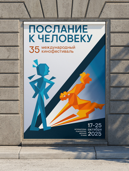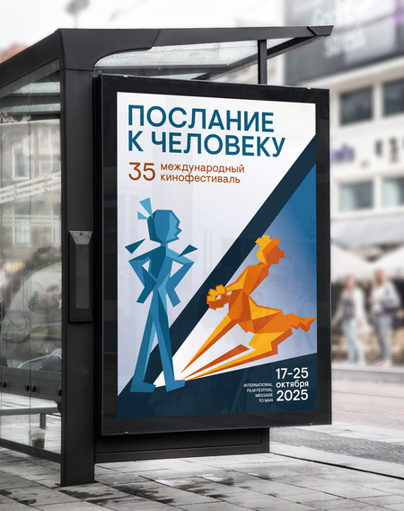 Плакат символизирует путь человека, ведущий к новым горизонтам искусства и смысла. В эту дорогу вписан логотип фестиваля — «Кентавр», ставший символом «Послания к человеку». Силуэт человека в синем — олицетворяет молодость и поиск. Такое сочетание образов подчеркивает главную миссию фестиваля — через кино напоминать человеку о его поисках, надеждах и вечном стремлении к познанию.