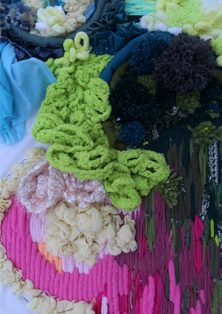 Кладоспориум, Хетомий шаровидный, Пенициллий, чёрная и розовая плесень — всё это представлено яркими кусками ткани и пряжи в чашке Петри.