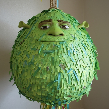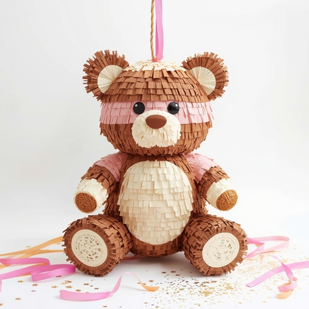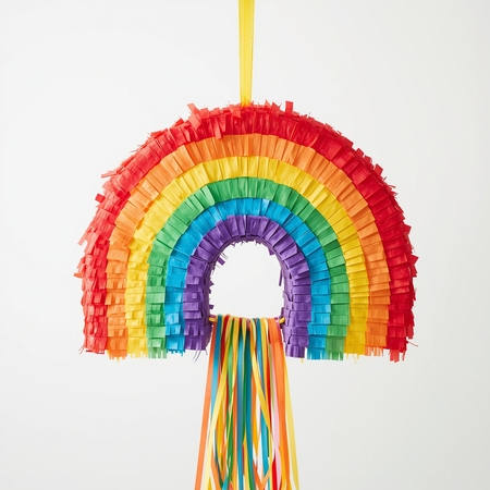 A piñata is a bright and colorful object, usually made of cardboard and filled with candies, small toys, or other treats. It is traditionally hung up, and participants take turns hitting it with a stick (often while blindfolded) until it breaks open and the contents spill out.