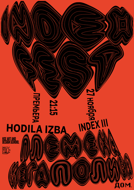 С 26 по 30 ноября в КЦ ДОМ проходил фестиваль INDEX-FEST при участии множества артистов с уникальными звучаниями. По итогам жеребьевки мне выпала ключевая метафора «отзвуки сфер» и выступление HODILA IZBA x INDEX III, что позволило мне определиться со «звучанием» плаката.
