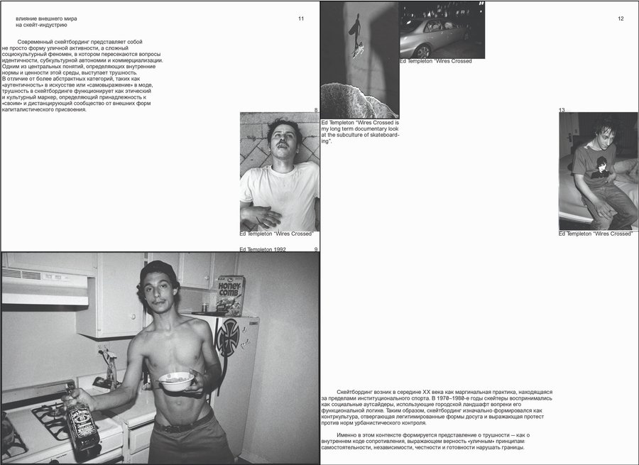 гипотеза: айдентика скейт-культуры — не случайность, а визуальная эстетика, фиксирующая процессы в обществе: сопротивление и самоидентификация, фэшн-индустрия и коммерциализация, возвращение в эстетику улиц и поиск подлинности