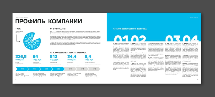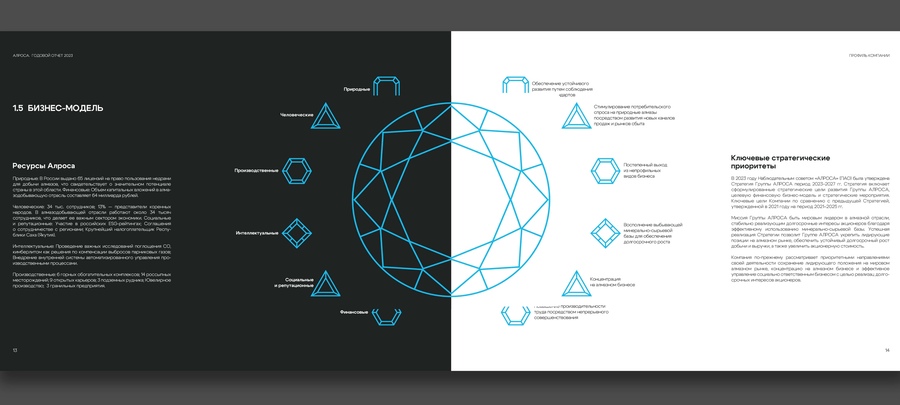 Годовой отчет «Все грани АЛРОСА», российской группы алмазодобывающих компаний, включает в себя пять разделов, объединенных единой концепцией.