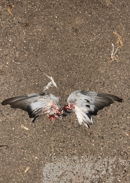 Кристева называет труп «самым отвратительным из отбросов», поскольку в нём «жизнь встречается со своей противоположностью» и граница между живым и мёртвым становится ярко выраженной. Труп не просто объект представляющий из себя след былой жизни, а знак того, что сам субъект может превратиться в «вещь, выброшенную за пределы», и потому вызывает смешанное ощущение ужаса и интереса. В фото городского пространства эту функцию часто выполняют останки мертвых раздавленных животных или следы насилия: едва заметные разорванные крылья голубя на асфальте делают смерть обыденной, но в тоже время непереносимой и пугающей. Схожий смысл несут в себе и изображения мусора, «брошенных вещей», одежды, обуви, пустых бутылок, валяющихся на земле. Мусор — это материальное воплощение abject: то, что когда‑то было частью человеческого быта, но утратило свою ценность. В похожем ключе Кристева анализирует нечистоты и отбросы как-то, что «должно быть удалено, чтобы субъект мог поддерживать иллюзию чистоты и порядка». Поэтому снимок кучи старых кроссовок у контейнера или одинокого ботинка на траве иногда оказывается столь же тревожащим, как и более «жестокие» кадры: он фиксирует момент, когда в прошлом нужная вещь становится бесполезной, а затем просто мусором.