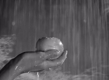 «Сцена с яблоком в „Июльском дожде“ — прямая аллюзия на библейскую историю, но с совсем иным выводом, выводом о самодостаточности героини этого фильма.» [5]