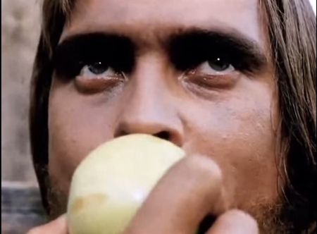 В фильме «Застава Ильича» М. Хуциева Вячеслав (один из трех друзей) в спешке рассыпает яблоки. Ребята собирают их, одной ногой уже находясь в трамвае. Затем Николай в вагоне угощает девушку-кондуктора одним из яблок. Эту сцену, как и в фильме Тарковского, можно интерпретировать в рамках инверсии библейского сюжета, однако тут все-таки жест героя принимает более простой характер. Здесь яблоко — не символ искушения, а жест искренности, попытка завоевать доверие, построить человеческую легкость поверх официальной риторики общения.