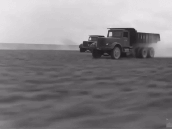 В сцене гонок советских рабочих, как и главный герой, мы наблюдаем грохочущую, пыльную, саркастичную профанацию идеи труда. Гонки — пародия на свободу. Камера, которая «преследует» машины, становится взглядом на чужой, отталкивающий мир, в который герой хочет вписаться, но никак не может. Духовные поиски одного индивидуума тонут в гудении машин и общем безразличии. Так же и в сцене упадка его сил, когда он работает с Абакиром.