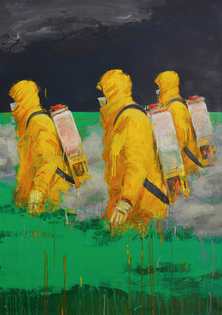«Отравленность сознания, эмоциональное выгорание и гнетущая неизвестность изображаются художником через формальные средства — флоуресцентные свечения, инверсию цвета, „прорывы“ пространства, которые художник также применяет к сетке пространственных координат степного южного пейзажа» [4].