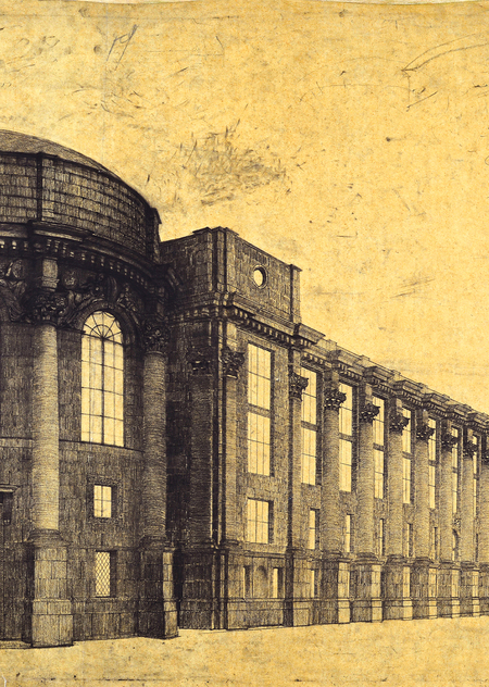 В. А. Веснин, А. А. Веснин. Конкурсный проект здания Наркомата тяжелой промышленности в Зарядье в Москве, 1935. Бумага, тушь