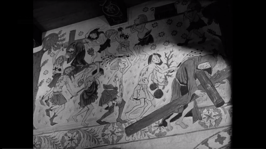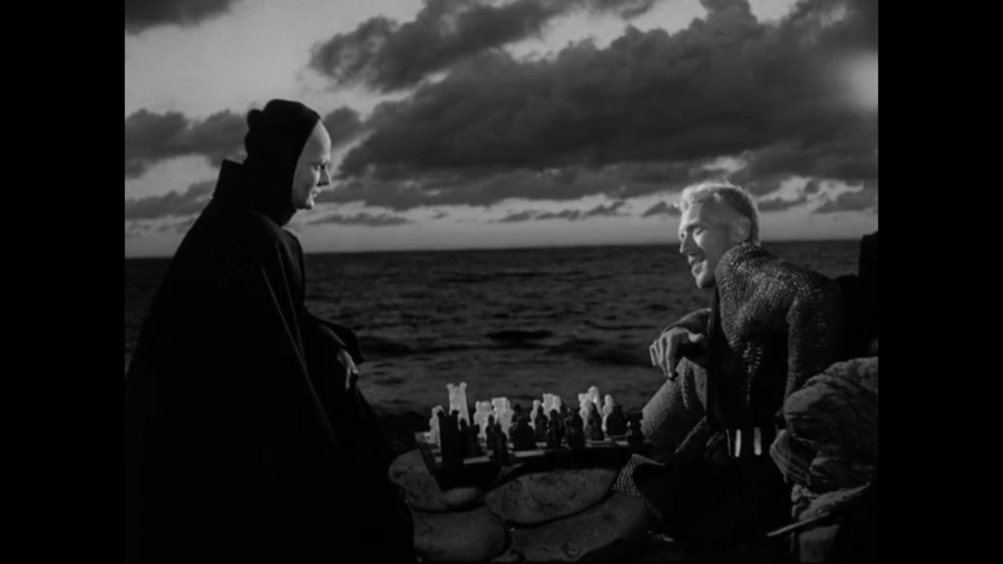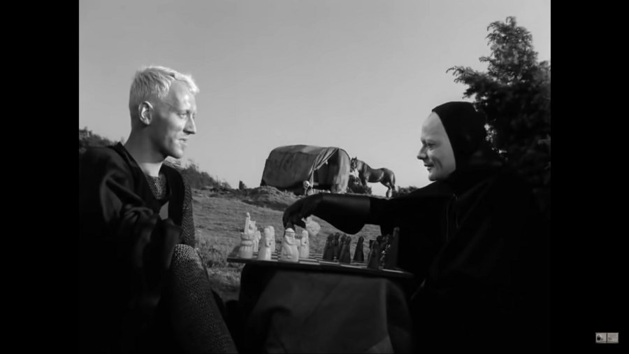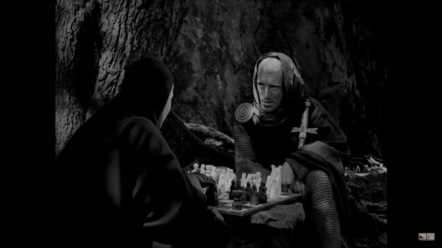 Одной из таких картин стала «Седьмая печать» датского режиссера Ингмара Бергмана, снятая в 1957 году. В основе сюжета картины лежит противостояние рыцаря, вернувшегося из Крестового похода и смерти, выразившееся в шахматной партии. Взаимодействие смерти и человека, в особенности воина, является темой, нашедшей широкое распространение в средневековом изобразительном искусстве.