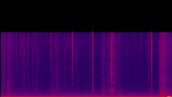 Звук [Работала стиральная машина] Спектрограмма показывает мягкий фон бытового пространства: широкополосный шум, без выраженных вертикальных импульсов. Низкие частоты устойчивы, верхние — редкие и разрозненные. Звуковая среда больше напоминает атмосферный слой, чем событийную структуру.