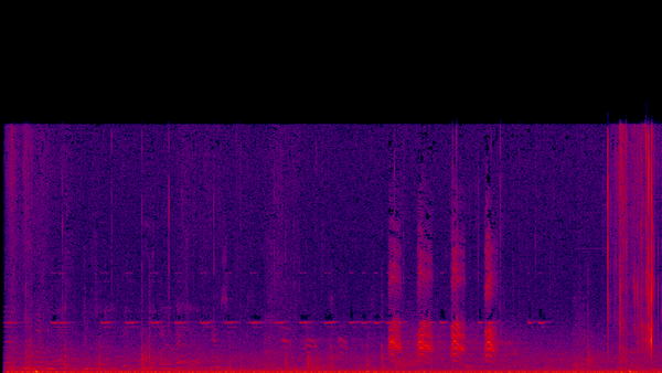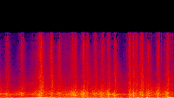 Звук Спектрограмма насыщена вертикальными полосами — множество импульсных событий кухни. Звук фрагментирован, ритмичен, наполнен мелкими всплесками.