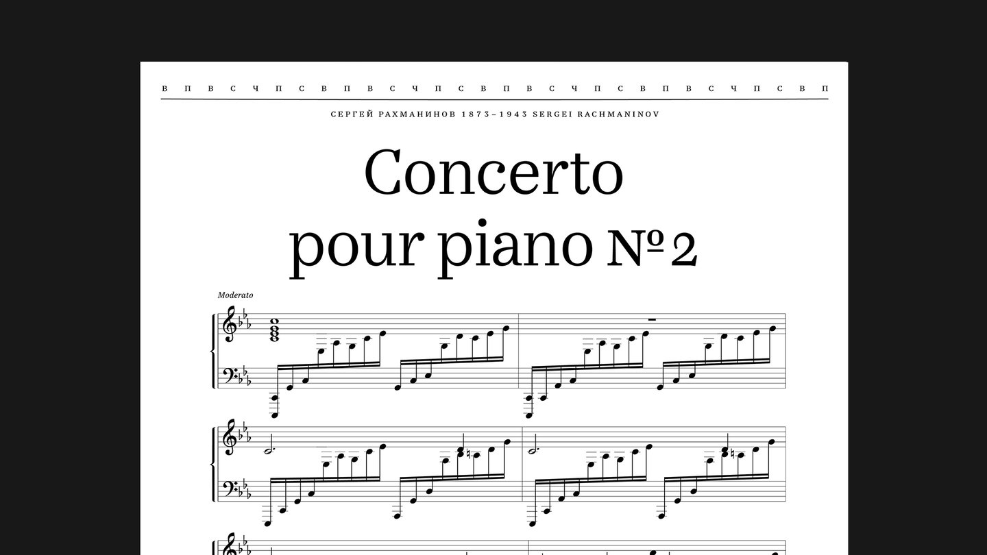 Rufus и Casus образуют тандем, потому что их формы, пропорции и пластика линий специально согласованы так, чтобы текст и ноты выглядели как единая типографическая система.
