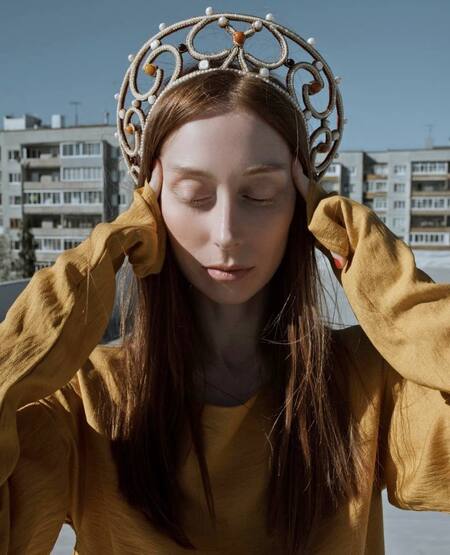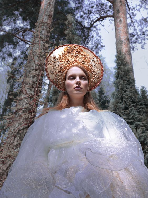 Кокошники в древнерусском стиле были богато украшены вышивкой, бисером, жемчугом, металлическими нитями и другими декоративными элементами. На них могли быть изображены символы религии, цветы, растения и геометрические узоры.