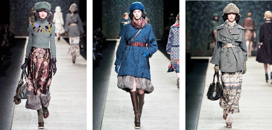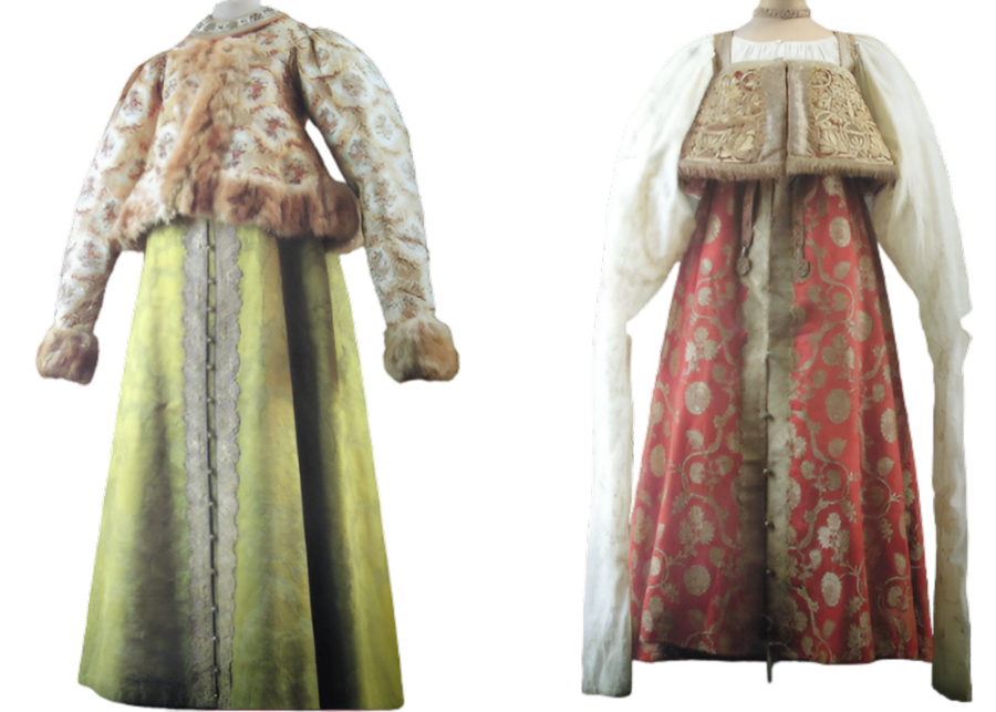 Разновидностей зимней одежды было много: кафтан, однорядка, охабень и тд. Но самые интересные и красивые, на мой взгляд, всё-таки шубы, тулупы, женские душегреи — верхний укороченный наряд, который бывает как с длинным, так и с коротким рукавом, нагольные шубы, которые носятся мехом внутрь и дворянские ферязи. Подобными предметами гардероба и вдохновлялись дизайнеры.