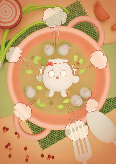 Вредные скалки и ножи так и норовят обидеть маленького пельменя! Берегись их!